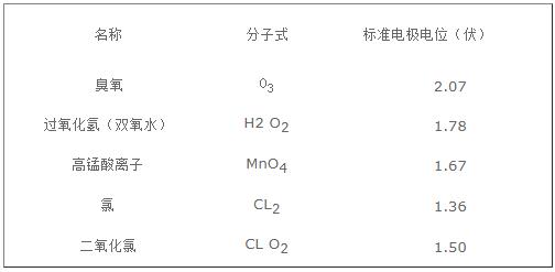 表一,可看出,與氧氣相比,臭氧比重大、有味、有色、易溶于水、易分解。由于臭氧(O3)是由氧分子攜帶一個(gè)氧原子組成,決定了它只是一種暫存形態(tài),攜帶的氧原子除氧化用掉外,剩余的有組合為氧氣(O2)進(jìn)入穩(wěn)定狀態(tài)。臭氧是一種氧化性非常強(qiáng)的物質(zhì),其氧化還原電位僅次于F2 。利用它的氧化性,可以在較短時(shí)間內(nèi)破壞細(xì)菌、病毒和其他微生物的生物結(jié)構(gòu),使之失去生存能力。所以臭氧工作中沒(méi)有二次污染產(chǎn)生,給人類的環(huán)保需求,這是臭氧技術(shù)應(yīng)用的最大優(yōu)越性。 臭氧的應(yīng)用主要在人為的滅菌消毒。這主要是臭氧有很強(qiáng)的氧化能力,氧原子可以氧化細(xì)菌的細(xì)胞壁,直至穿透細(xì)胞壁與其體內(nèi)的不飽和鍵化合而奪取細(xì)菌生命,它的作用是即刻完成的,臭氧的迅速滅菌效果決定于它的高還原電位,表二、列出了消毒物質(zhì)還原電位與臭氧的比較。