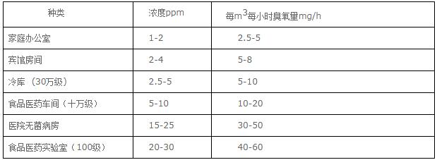 臭氧對(duì)空氣中的微生物的滅活濃度和物體表面沉降的微生物的滅活濃度,根據(jù)衛(wèi)生部1991年12月頒布的《消毒技術(shù)規(guī)范》第4.12臭氧應(yīng)用章節(jié)中第8.2款消毒空氣中規(guī)定“對(duì)密閉的空氣用5~10mg/m3濃度(相當(dāng)于2.5~5ppm)的臭氧作用30分鐘;對(duì)物體表面的沉降菌落需要20~30mg/m3(相當(dāng)于10~15ppm)”。制藥行業(yè)應(yīng)用臭氧的目的是用來(lái)代替紫外線和化學(xué)熏蒸,對(duì)整個(gè)潔凈區(qū)空氣及機(jī)械設(shè)備,介質(zhì)材料表面的沉降菌落進(jìn)行大消毒。需要的臭氧濃度為10~15ppm,相當(dāng)于每立方空氣中臭氧含量20~30mg。